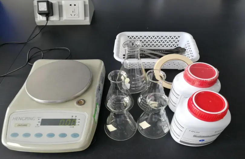 配制使用的容器大小应大于加水后培养基总体积的2倍以上,避免在加热溶解过程中培养基溢出。分装培养基所用的玻璃器皿应由中性硬质玻璃制成,无色透明,有耐酸、耐碱和耐药腐蚀性能,防止部分玻璃瓶在加热过程中释放出碱性物质,使培养基的pH发生改变。