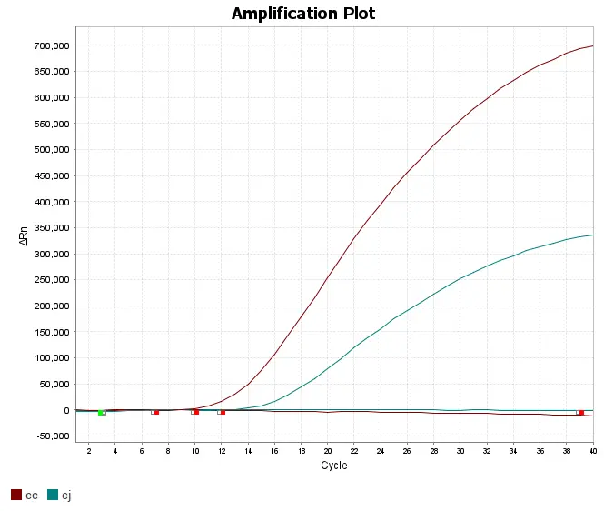 采用多重荧光PCR技术,在一个反应体系中同时检测空肠弯曲菌和结肠弯曲菌。FAM通道检测结肠弯曲菌,VIC通道检测空肠弯曲菌。